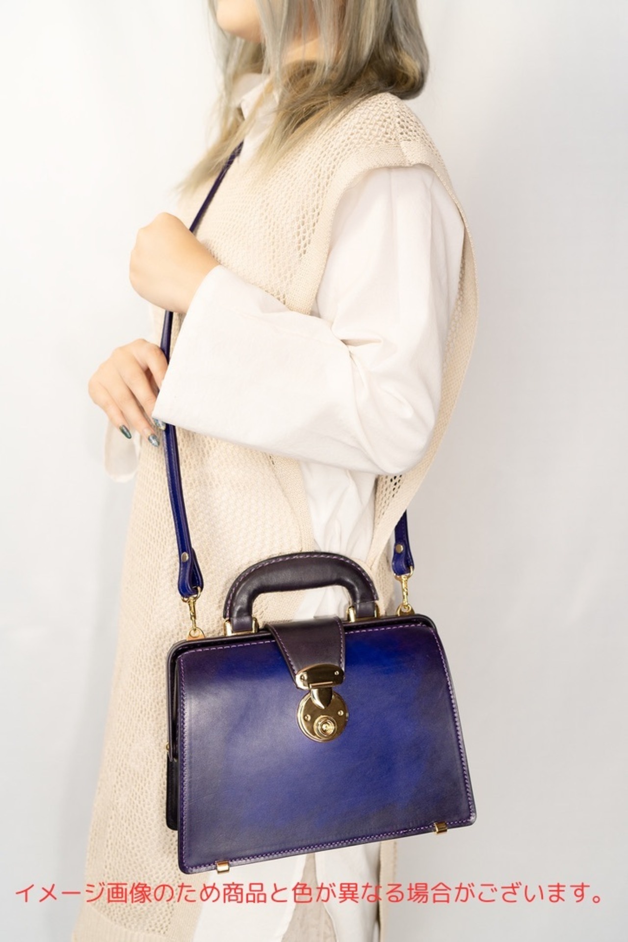 ハンド持ちとショルダーベルト持ちの2wayが選択できます。コーディネートやTPOに合わせて使えるようになりました。市販では見ることができない鮮やかな色を手染めで表現して製作しました。